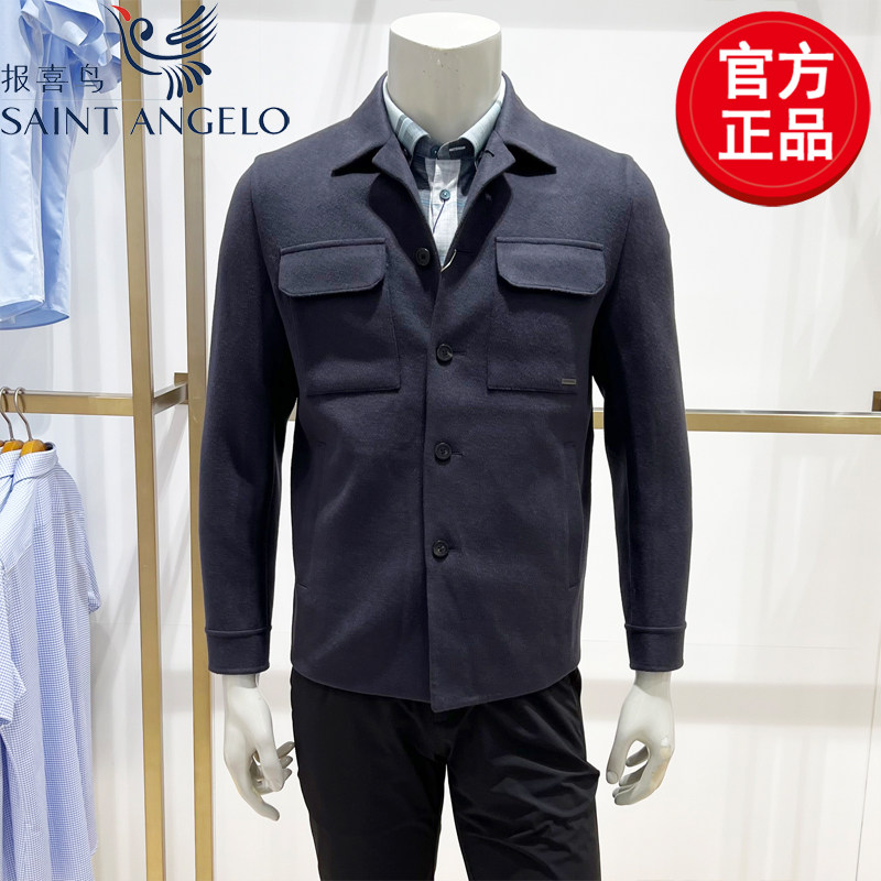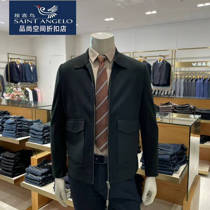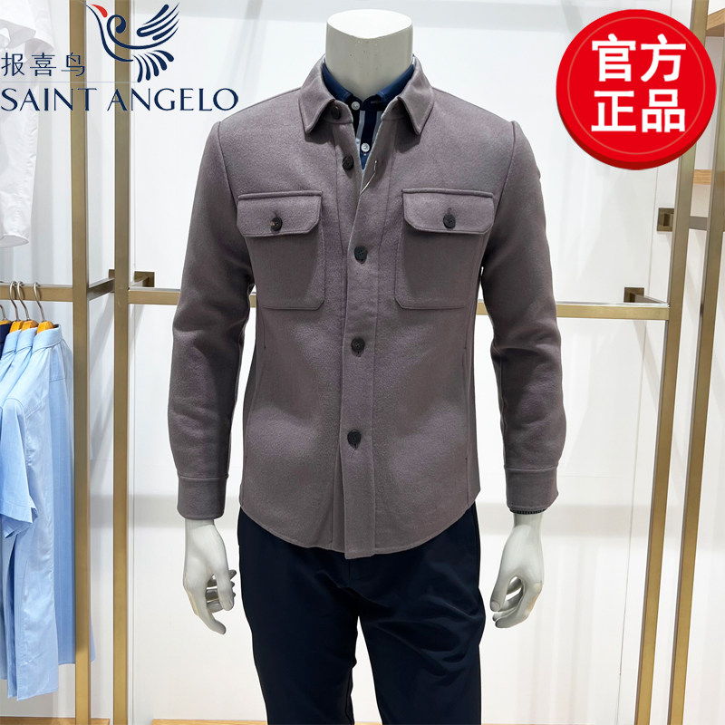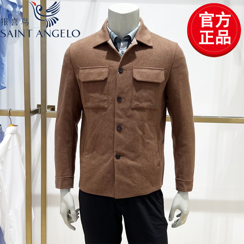 报喜鸟男士夹克衫外套翻领时尚休闲工装毛呢上衣潮流秋季新款上班