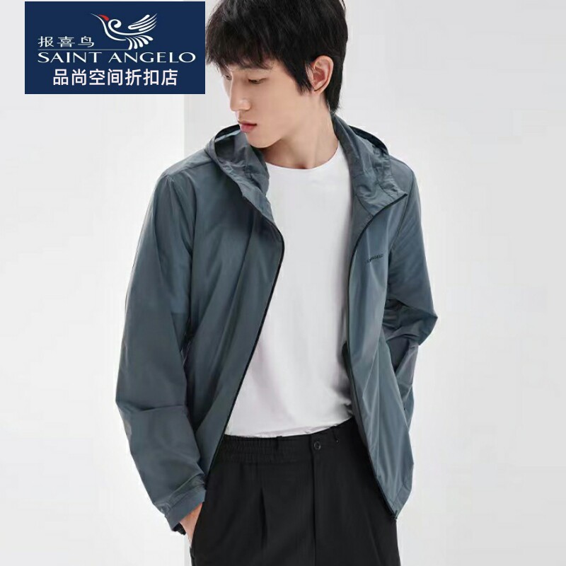 报喜鸟春季新款冰丝防晒衣男薄款透气速干外套连帽夹克衫皮肤衣