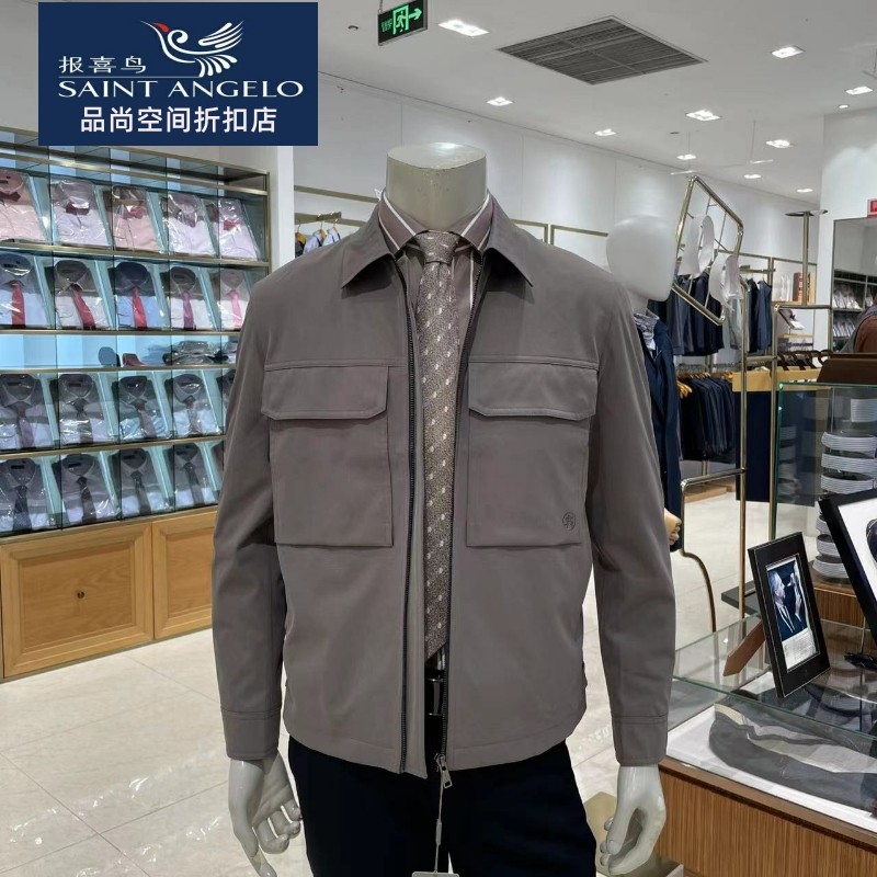 报喜鸟专柜正品男士翻领夹克衫休闲上衣秋季修身时尚经典外套茄克
