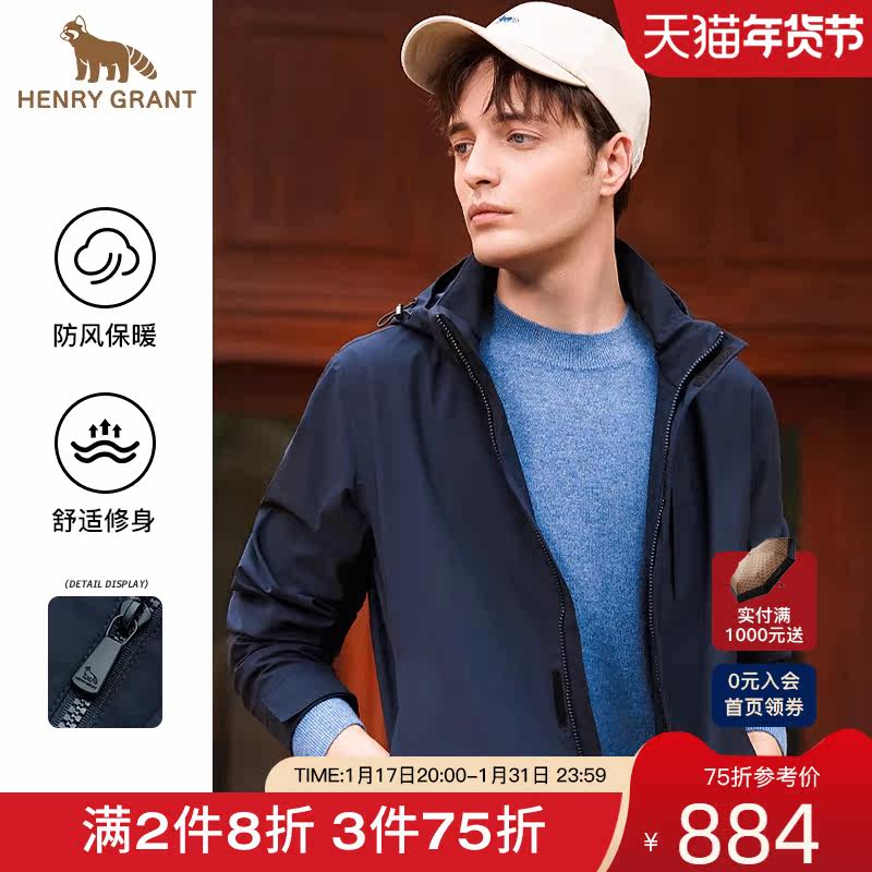 亨利格兰报喜鸟男装秋冬新品男士纯色简约防风外套商务休闲夹克衫