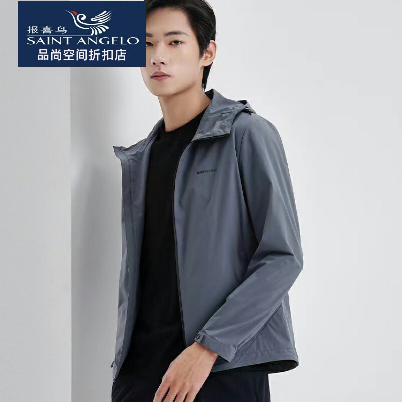 报喜鸟男休闲连帽夹克衫青年立领防风简约外套冲锋衣秋款专柜正品
