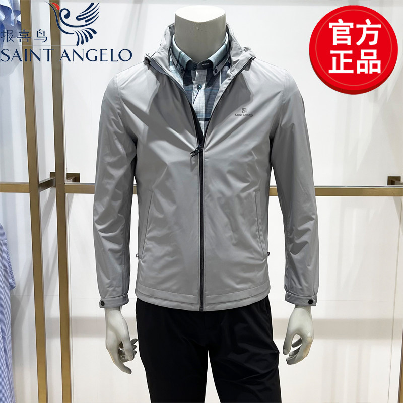 报喜鸟男装正品春季新款连帽防风夹克外套上衣休闲茄克衫薄款透气