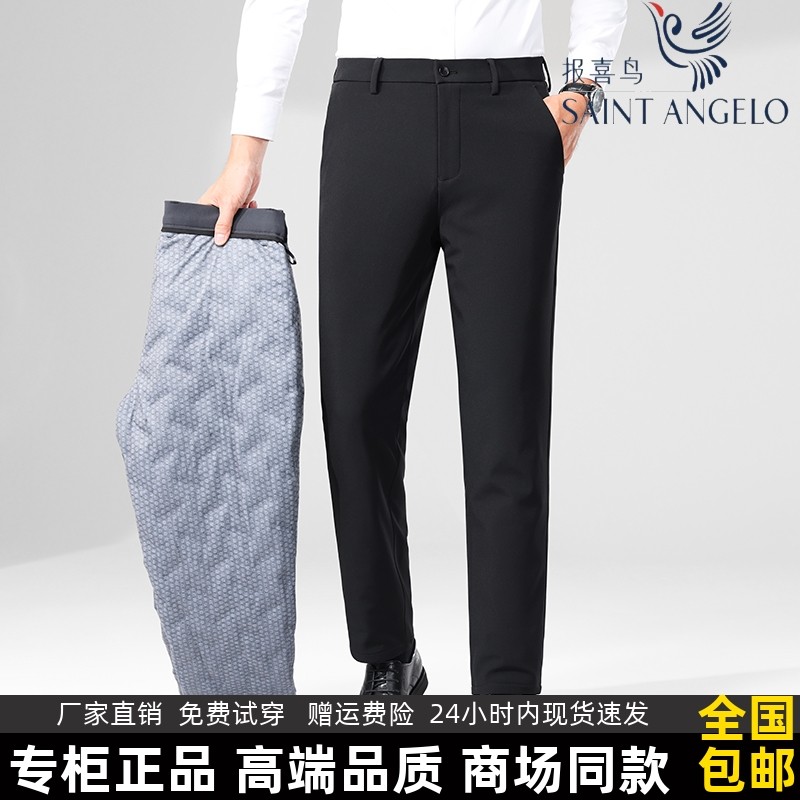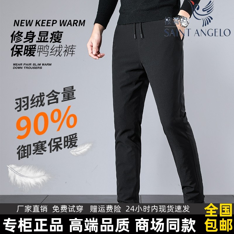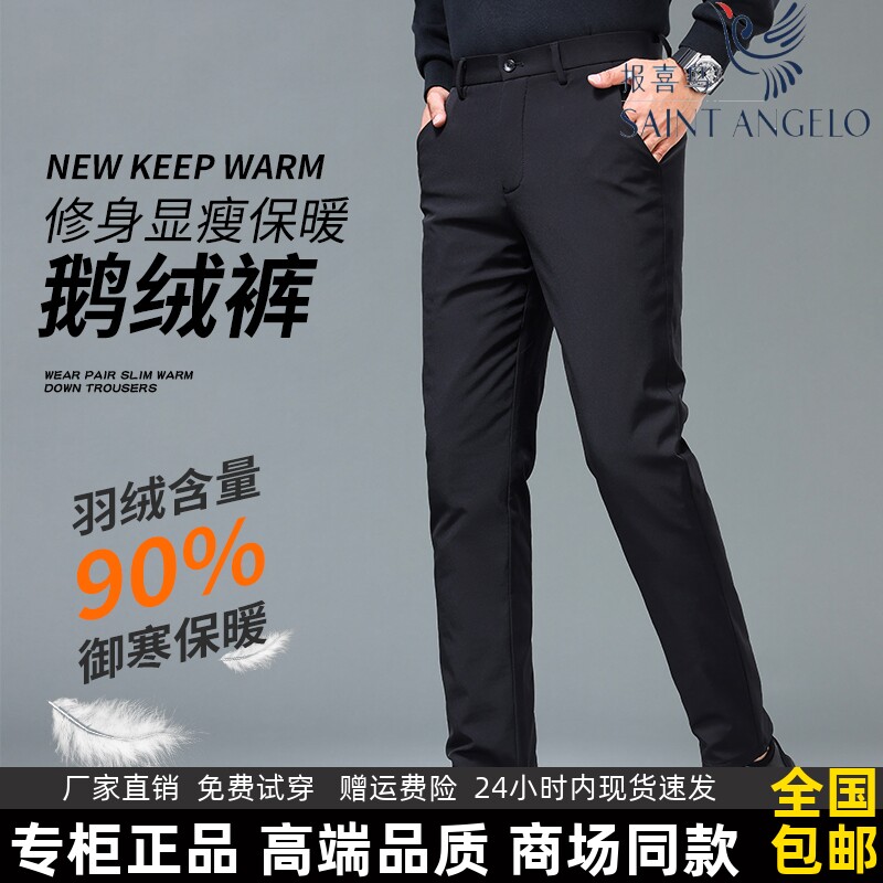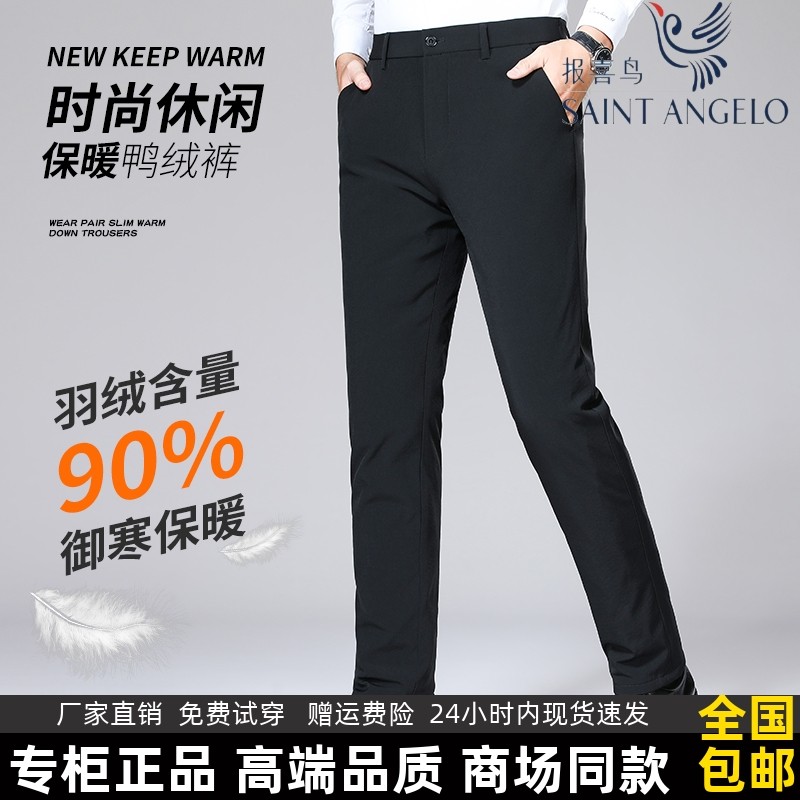 高端报喜鸟商务休闲羽绒裤男外穿中年冬季保暖白鹅绒宽松防寒棉裤