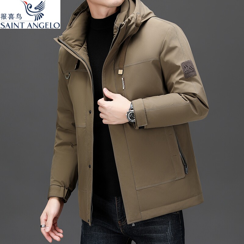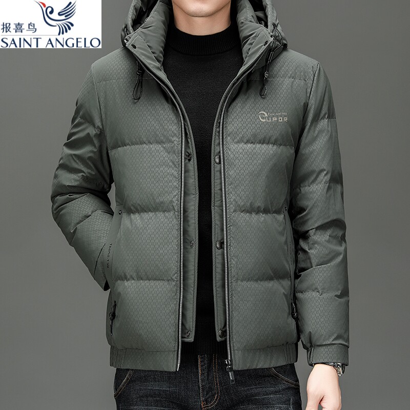 报喜鸟高档羽绒服男短款冬季加厚连帽时尚保暖防寒轻薄白鸭绒外套