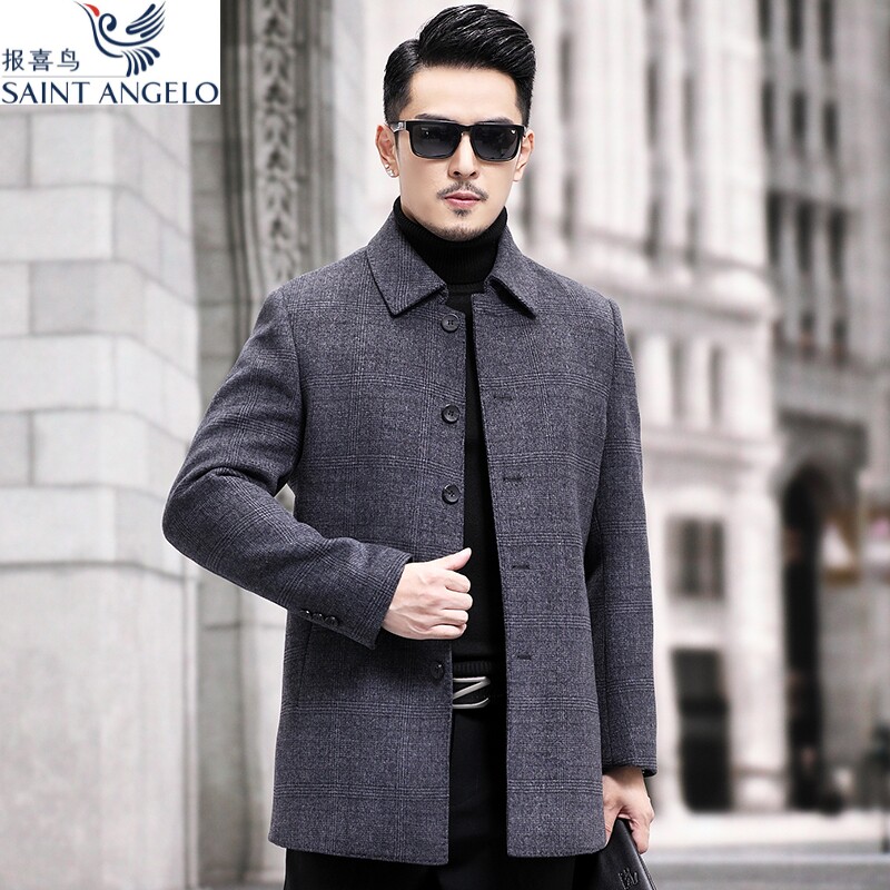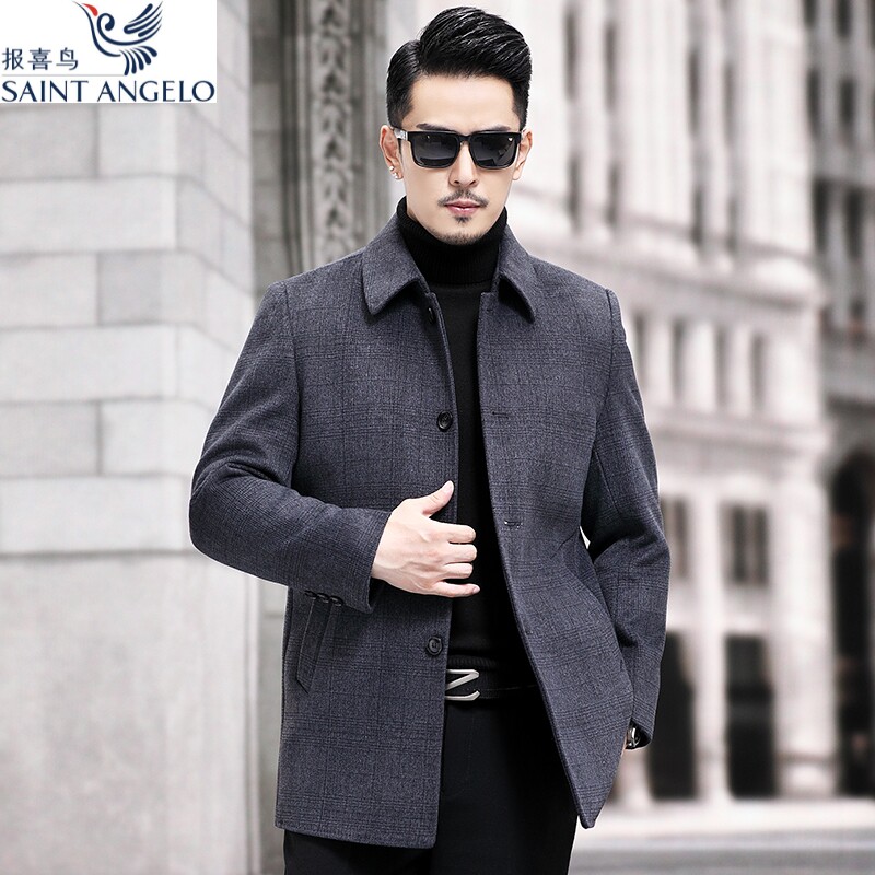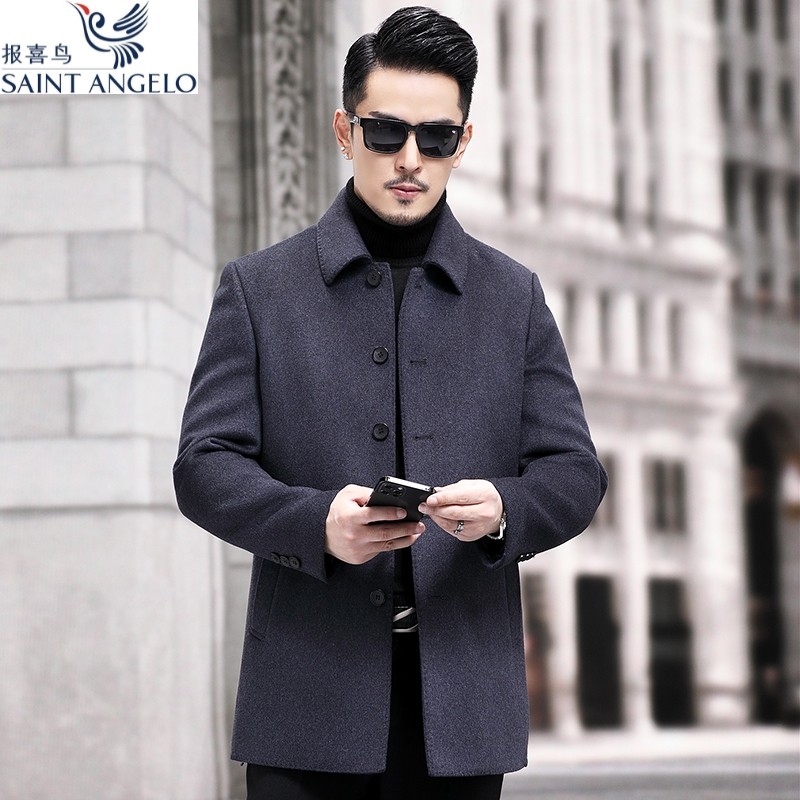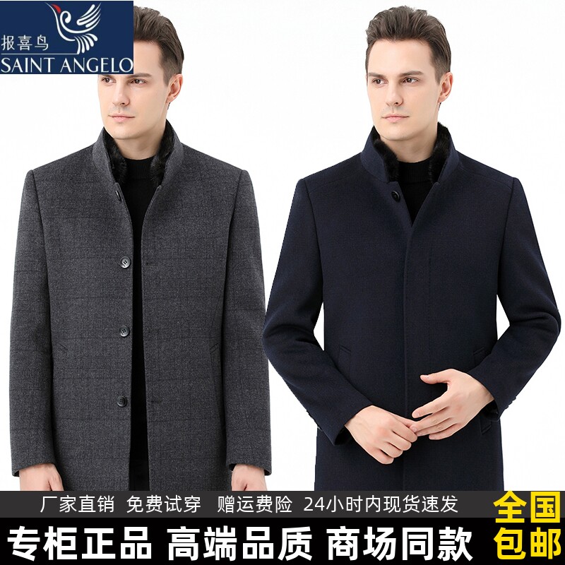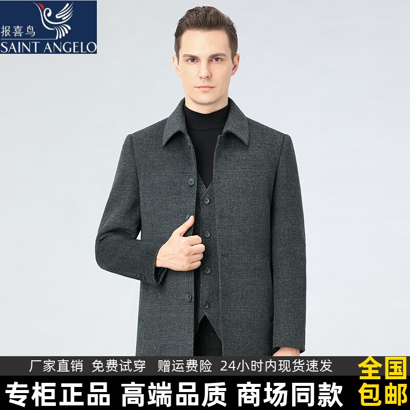 报喜鸟双面羊绒大衣男秋冬羊毛呢子加厚羽绒内胆中年休闲羊毛外套
