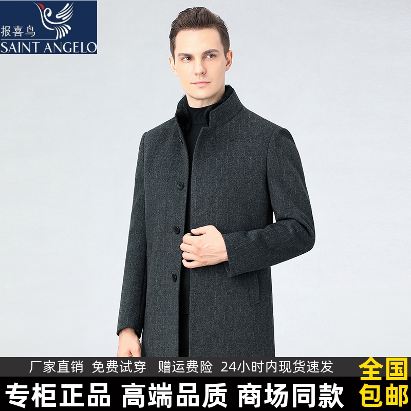 报喜鸟羊毛大衣男冬季羊绒呢子加厚羽绒内胆外套防寒水貂毛领风衣