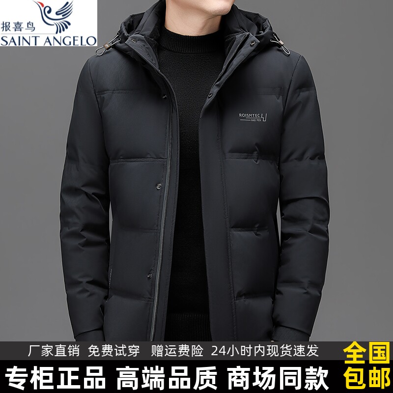 报喜鸟羽绒服男冬季加厚品牌男装连帽防寒服加肥加大码白鸭绒外套