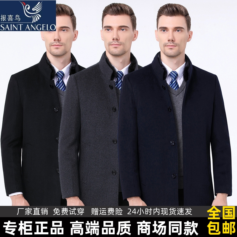 报喜鸟双面呢羊绒大衣男商务休闲羽绒内胆中长款水貂毛领羊毛外套