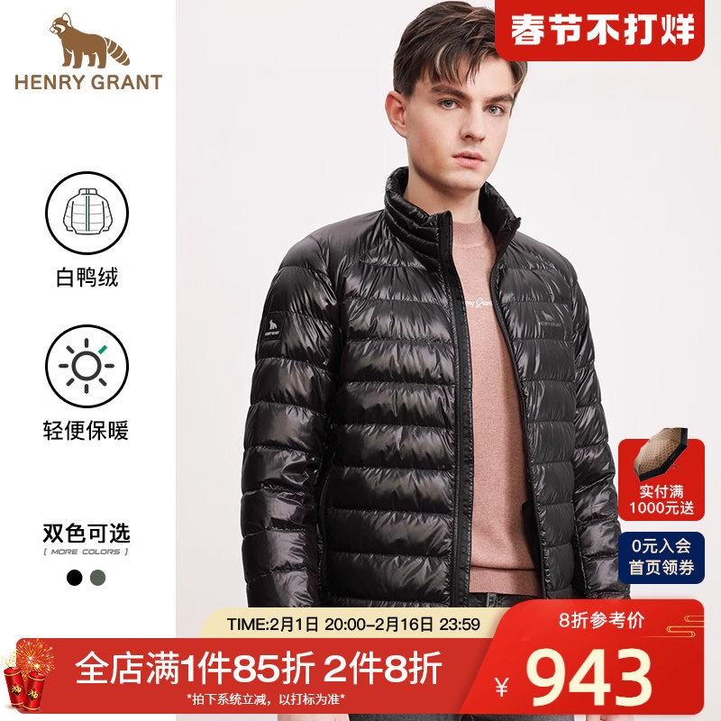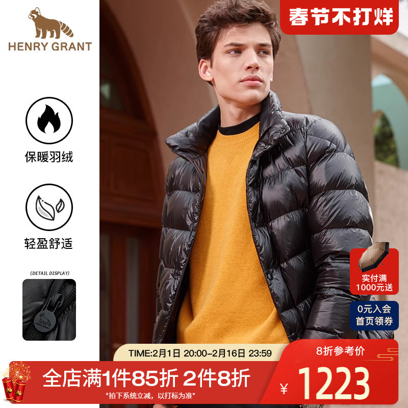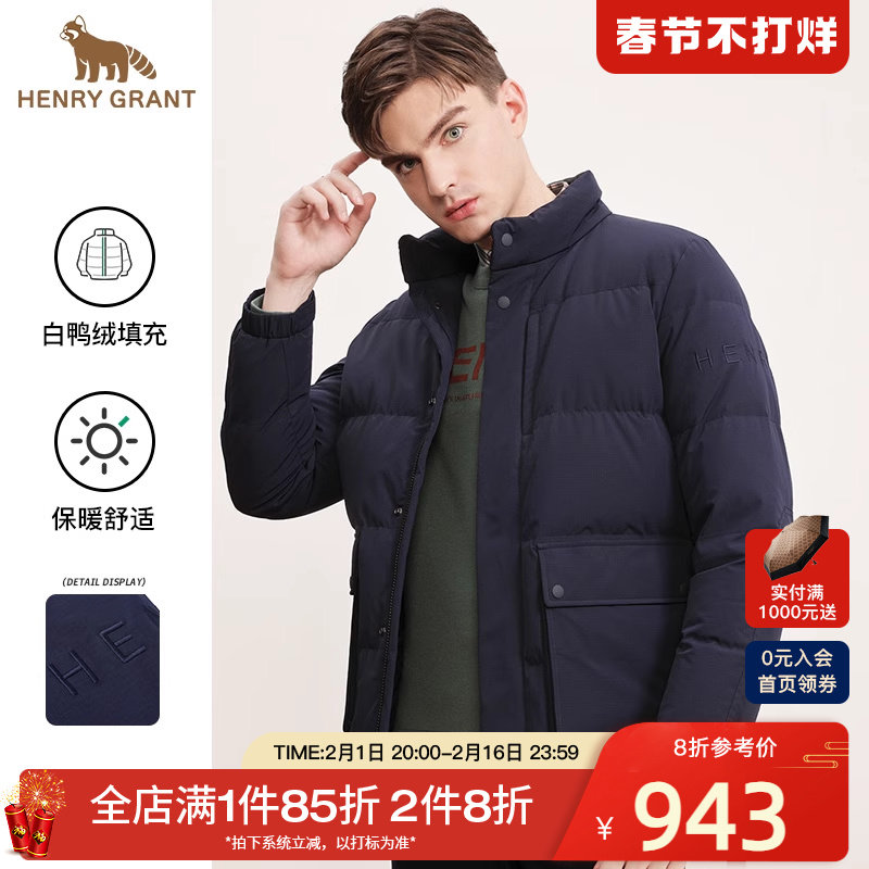 亨利格兰报喜鸟男装冬季新款男士立领保暖鸭绒羽绒服英伦舒适外套