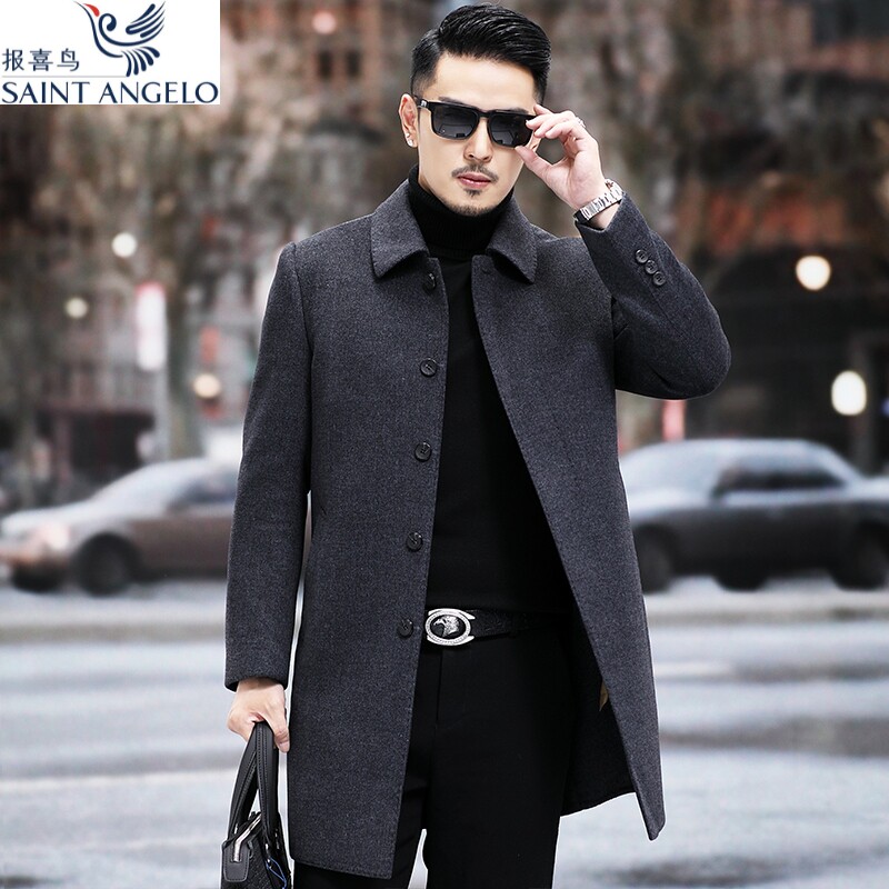 报喜鸟羊绒大衣男长款过膝盖冬季加厚妮子风衣羽绒内胆羊毛呢外套