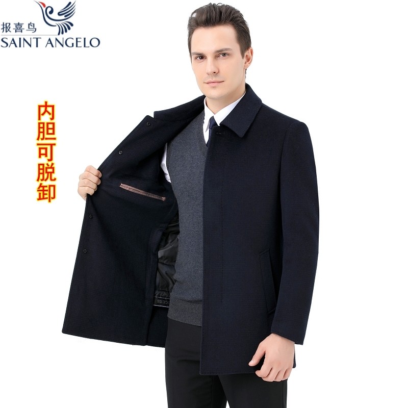 报喜鸟冬季可拆卸羽绒内胆毛呢大衣男士中年爸爸装双面呢羊毛外套