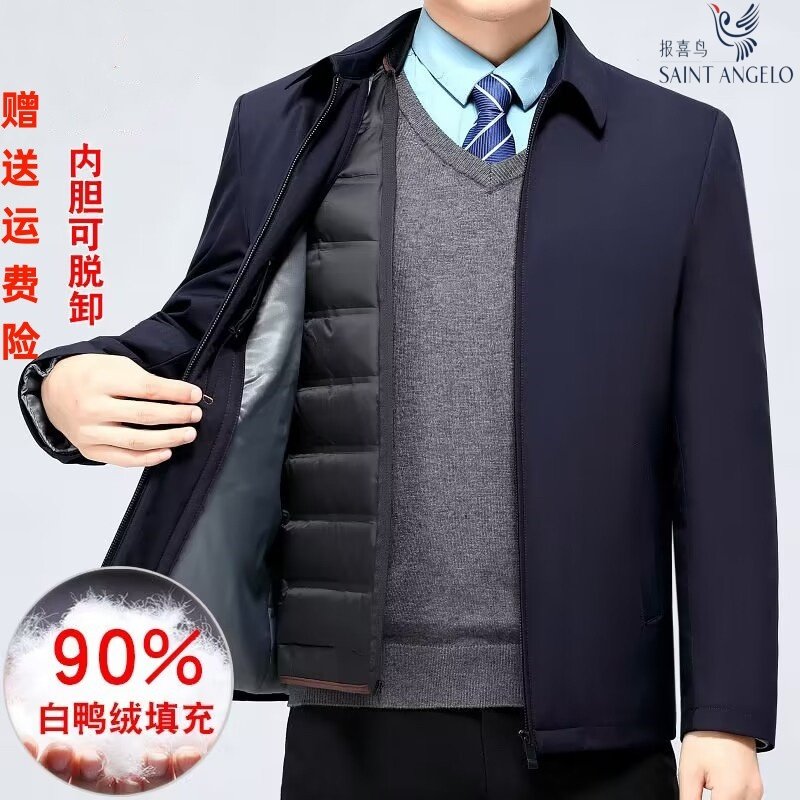 报喜鸟高档羽绒服男中老年可拆卸内胆加厚外套爸爸装冬季大码夹克