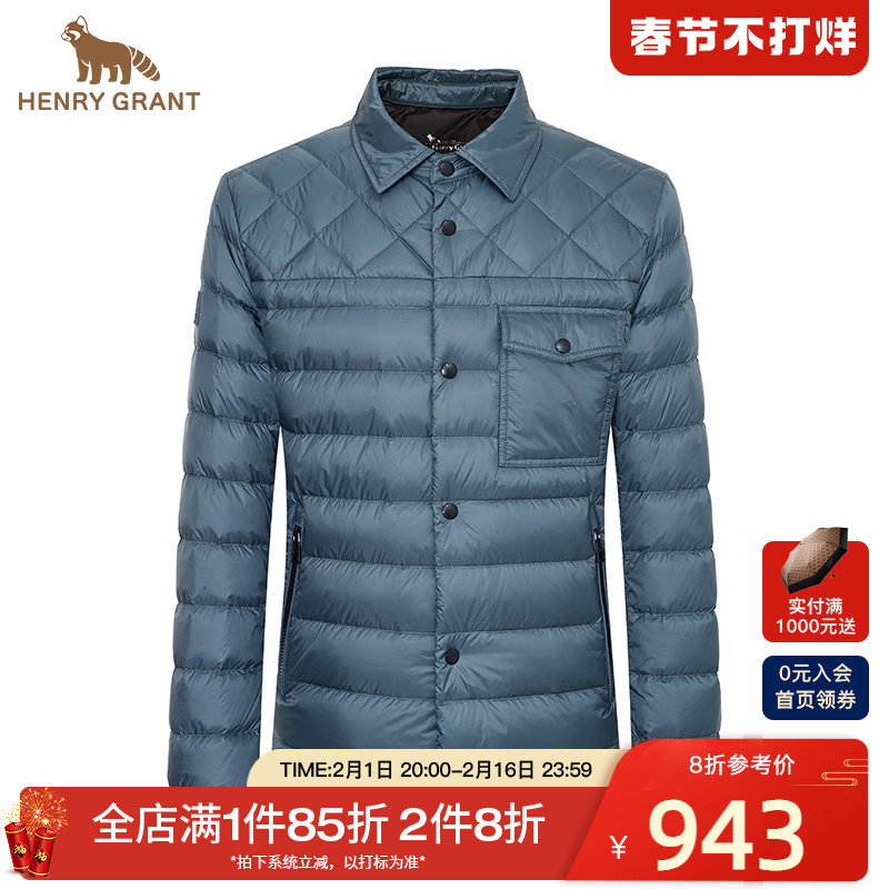 亨利格兰报喜鸟男装商务休闲衬衫羽绒男外套夹克保暖白鸭绒羽绒服
