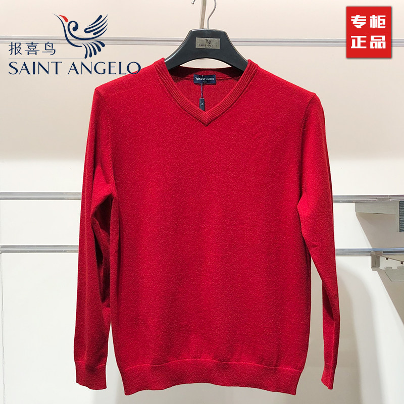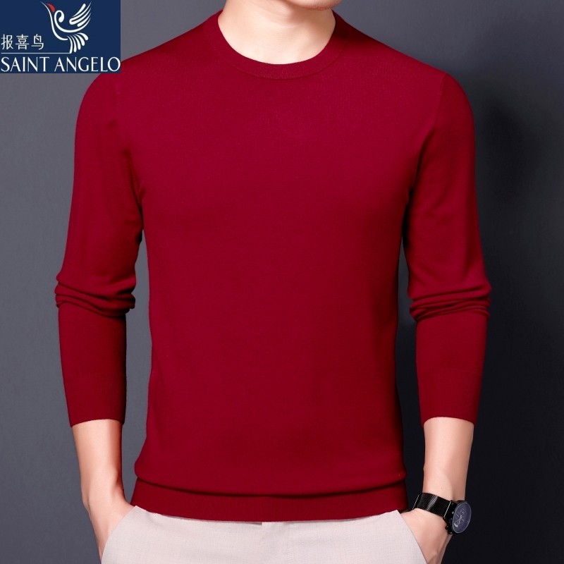 报喜鸟羊绒衫男本命年红色毛衣套头纯色打底衫秋冬加厚针织羊毛衫
