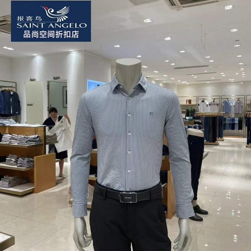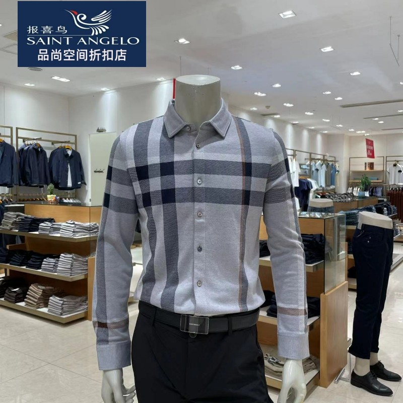 报喜鸟运动系列男休闲长袖衬衫舒适亲肤潮流修身条纹针织专柜正品
