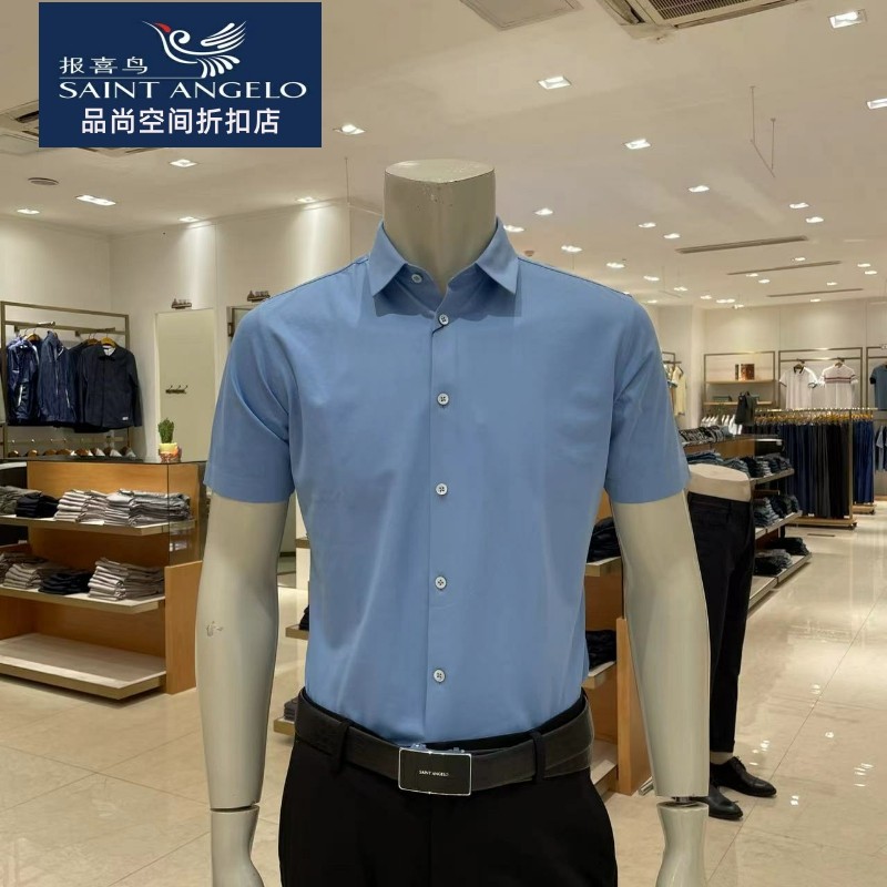 报喜鸟品牌男士短袖针织衬衫蓝色标准版商务正装夏季新款专柜正品