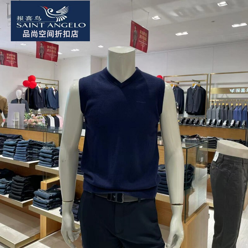 报喜鸟秋冬款正品男士商务休闲V领羊毛衫无袖套头羊毛针织背心潮