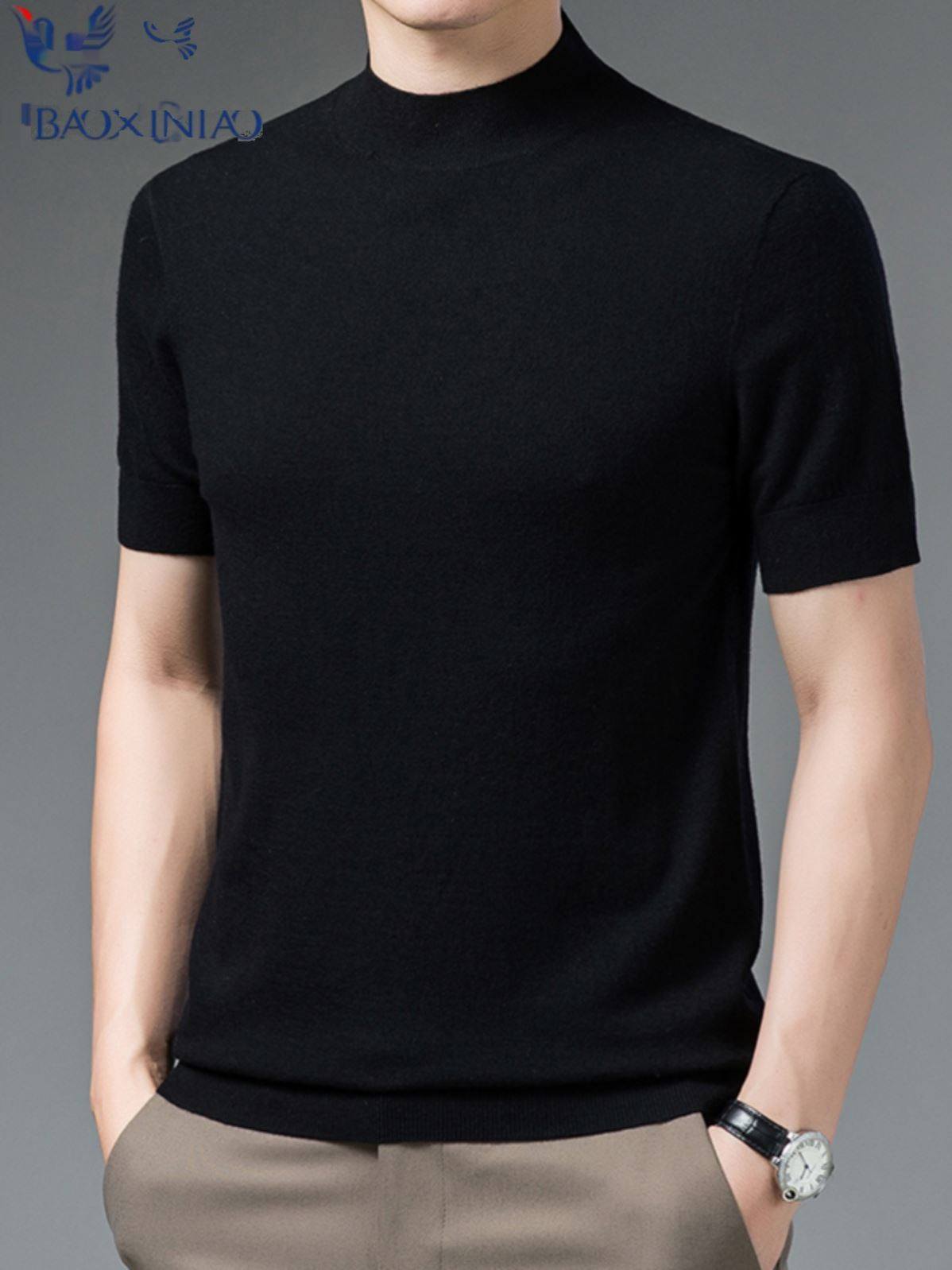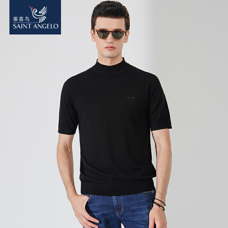 报喜鸟短袖羊毛衫商务休闲针织polo直筒方领内搭打底衫职场上班男