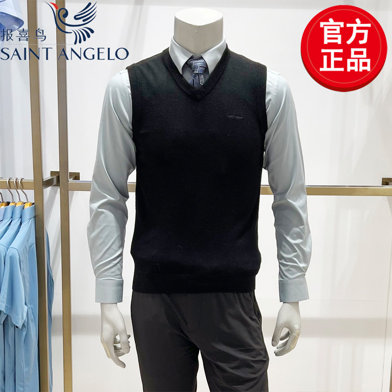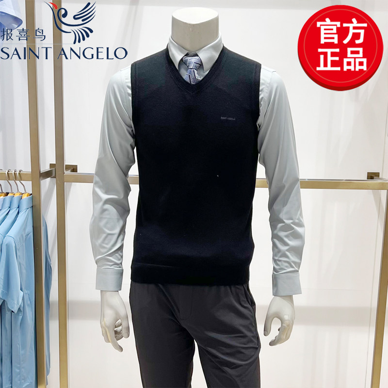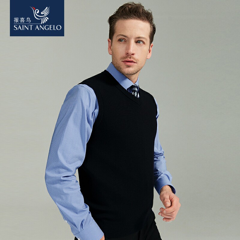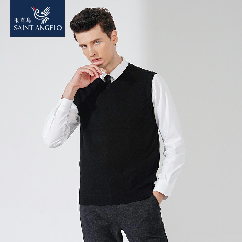 报喜鸟纯羊毛背心中青年男士商务休闲马甲直筒针织打底衫保暖内搭