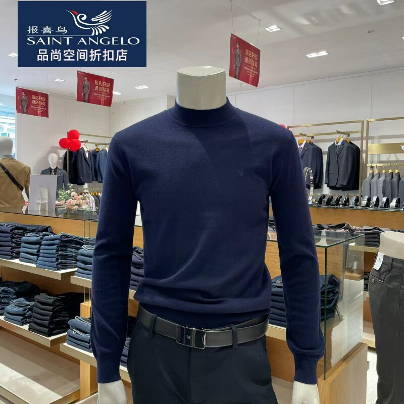 报喜鸟半高领毛衣商务休闲羊毛衫直筒套头针织衫保暖内搭打底日常