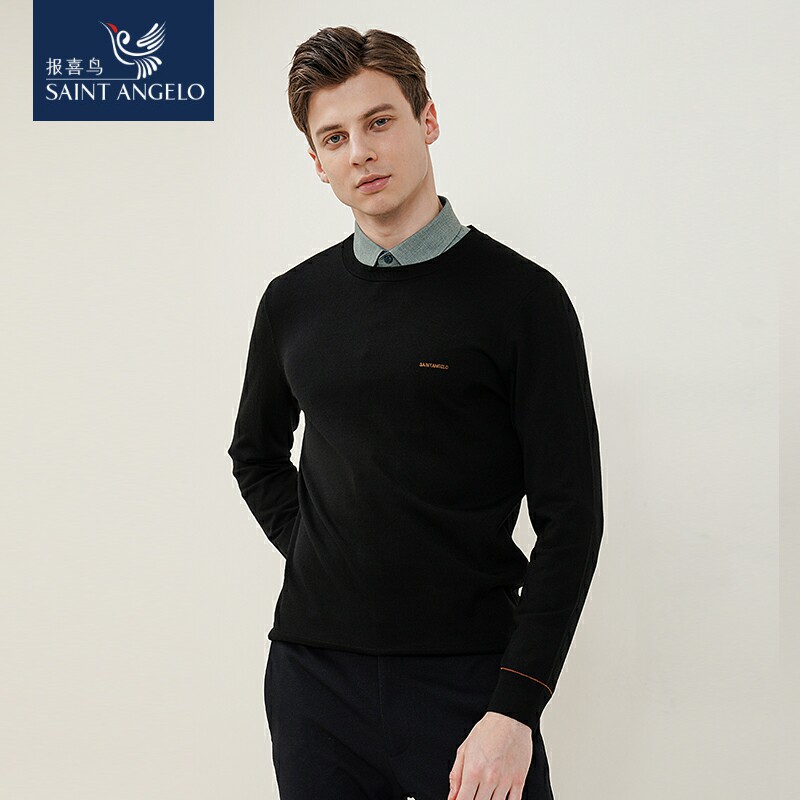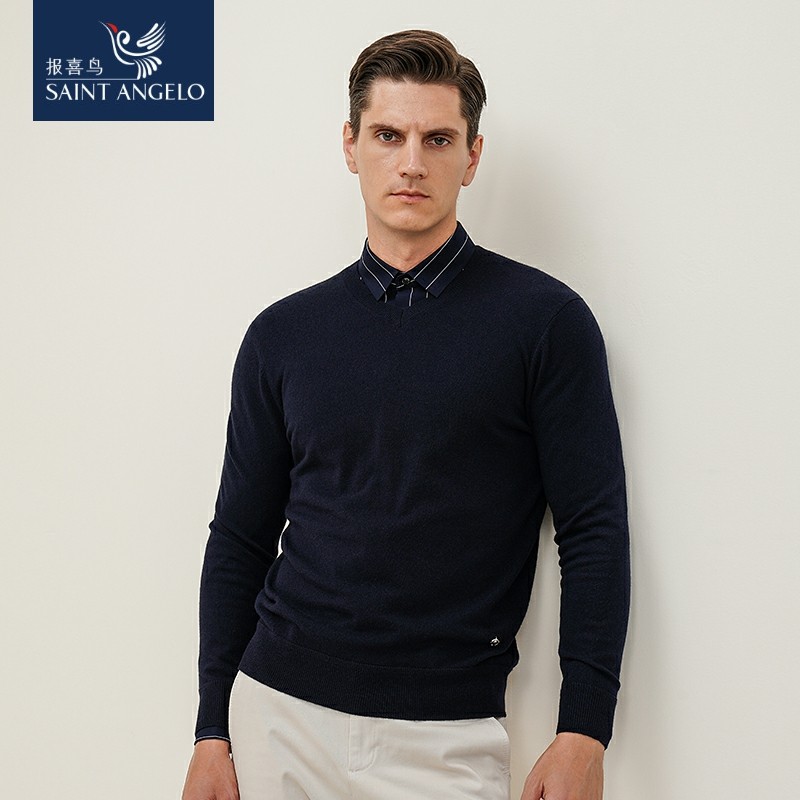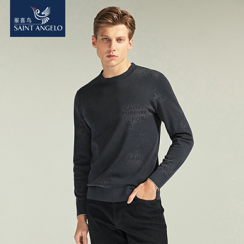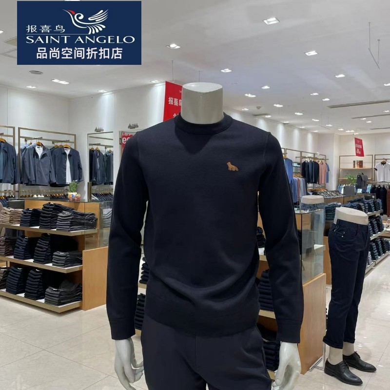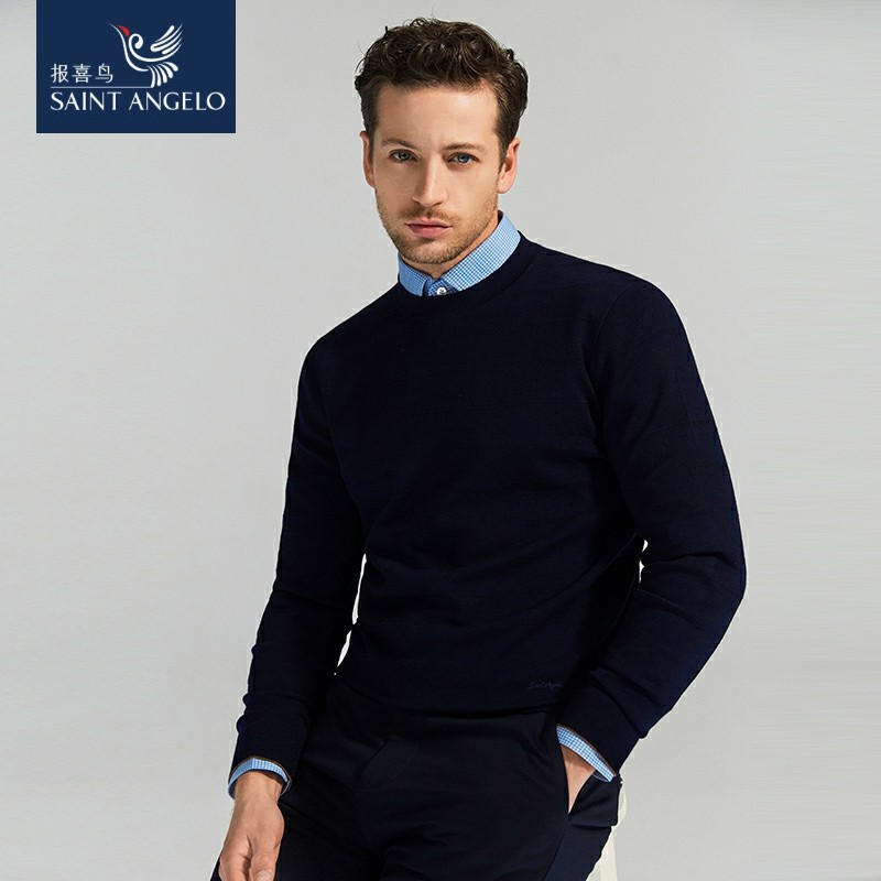 报喜鸟时尚休闲毛衣圆领套头针织衫长袖羊毛衫保暖打底衫日常旅行