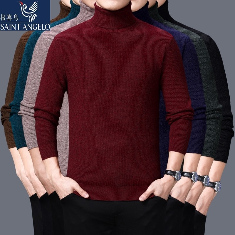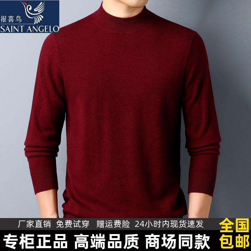 高领毛衣男报喜鸟羊绒衫男士秋冬季内搭针织打底衫加厚保暖羊毛衫