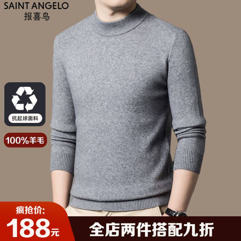 报喜鸟男士秋冬新款100%羊毛套头针织衫加厚半高领抗起球可机洗