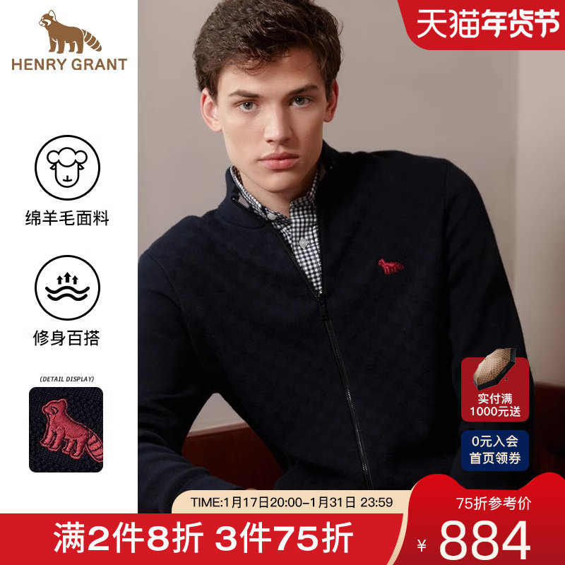 亨利格兰报喜鸟男装秋冬新品男士商务休闲针织羊毛衫潮流百搭开衫
