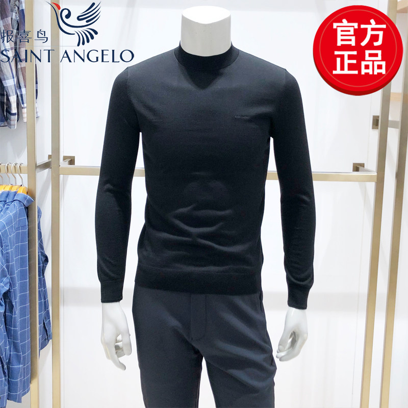 报喜鸟男士黑色中领羊毛衫可机洗针织衫线衣套头潮流打底秋冬正品