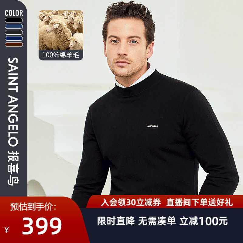 报喜鸟商务休闲羊毛衫圆领针织衫纯色毛衣套头保暖内搭日常职场帅