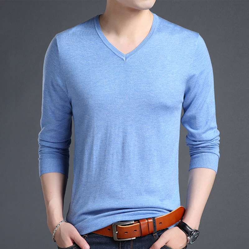 报喜鸟V领羊毛衫冬季套头针织衫商务休闲长袖毛衣纯色T恤打底衫男