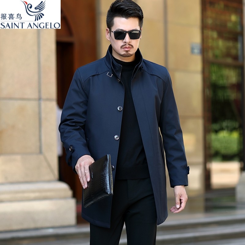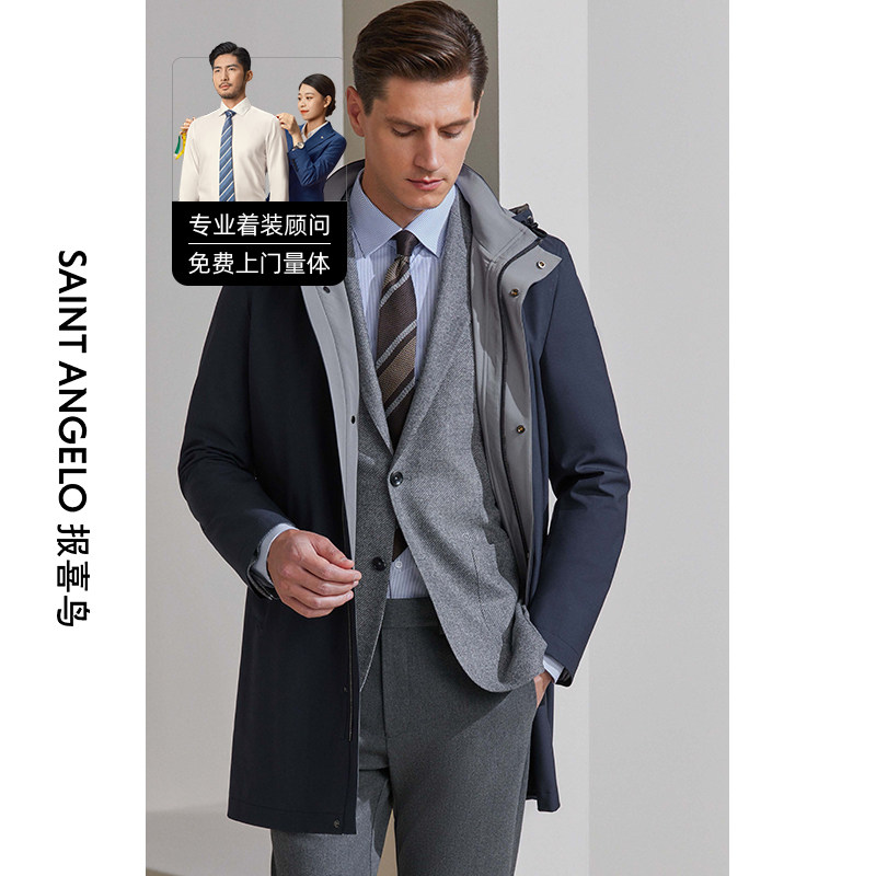 报喜鸟风衣男中长款可拆内胆中青年男士秋冬休闲加厚夹棉大码外套