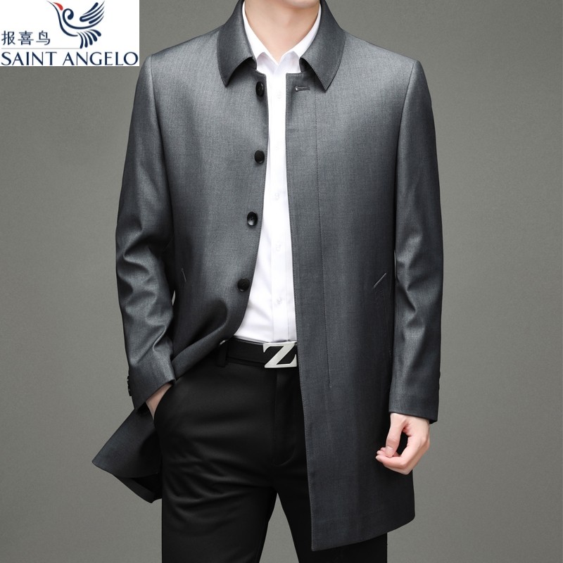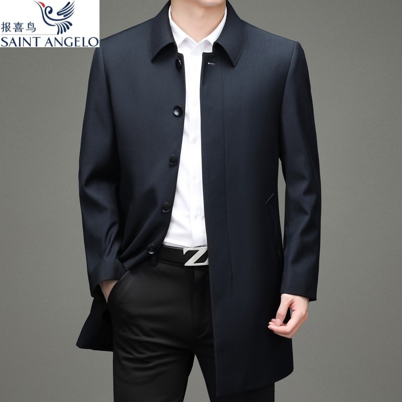 报喜鸟风衣男中长款翻领大码冬季中老年爸爸休闲加绒加厚大衣外套