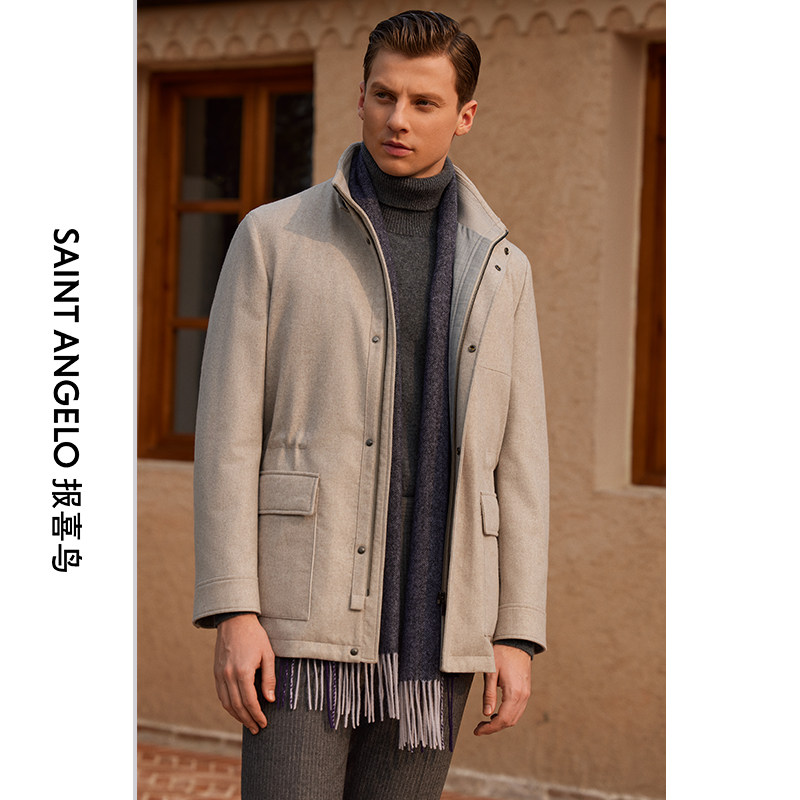 报喜鸟中长款羊毛呢子风衣男士冬装羊绒大衣高端羽绒内胆大码外套