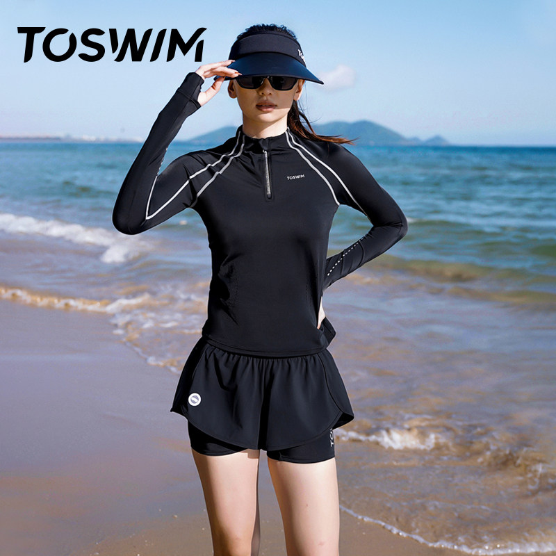 TOSWIM分体式泳衣女夏泳装游泳衣时尚遮肚显瘦保守长袖防晒海边