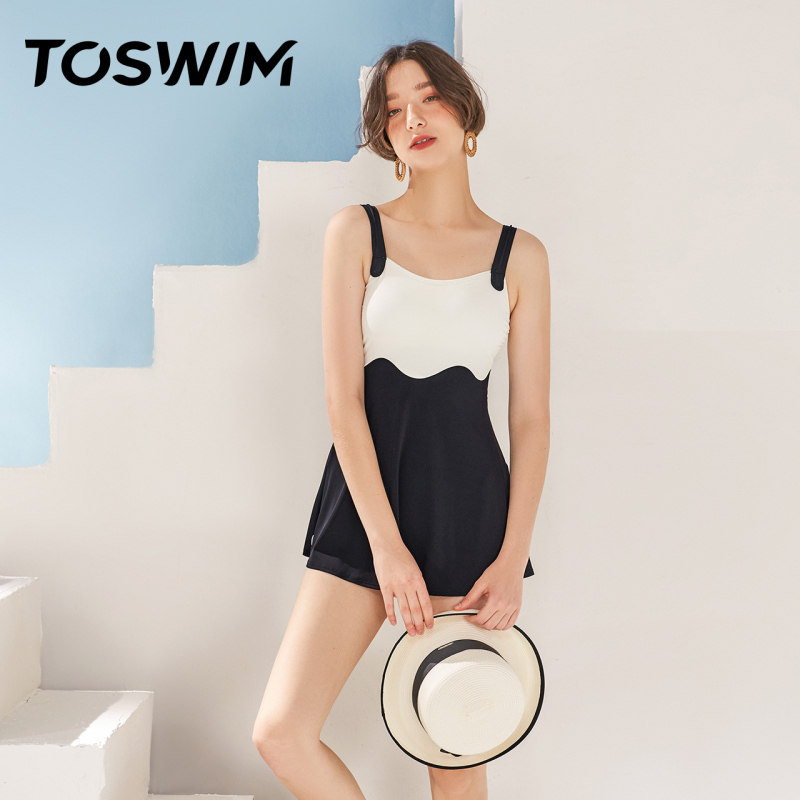 TOSWIM连体裙式游泳衣女泡温泉性感遮肚塑身显瘦韩国保守新款泳装