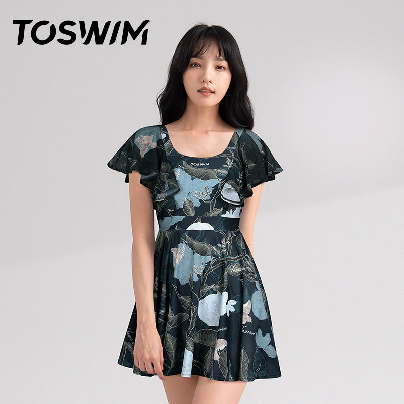 TOSWIM泳衣女夏连体裙式保守游泳衣遮肚显瘦海边度假温泉泳装新款