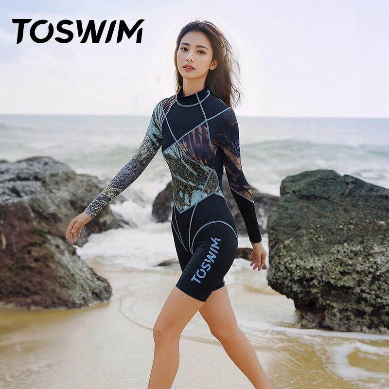 TOSWIM冲浪潜水服套装女士分体长袖长裤防晒速干新款泳衣遮肚显瘦