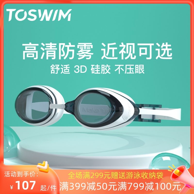 TOSWIM拓胜大框泳镜男士近视防水防雾高清女游泳眼镜游泳潜水装备