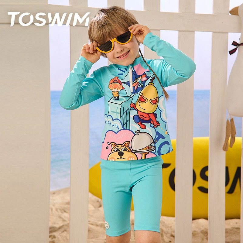 TOSWIM儿童泳衣女童分体长袖保暖防晒中大童女孩速干萌趣游泳衣