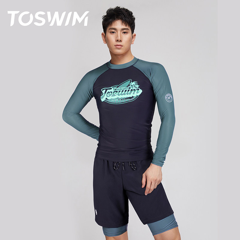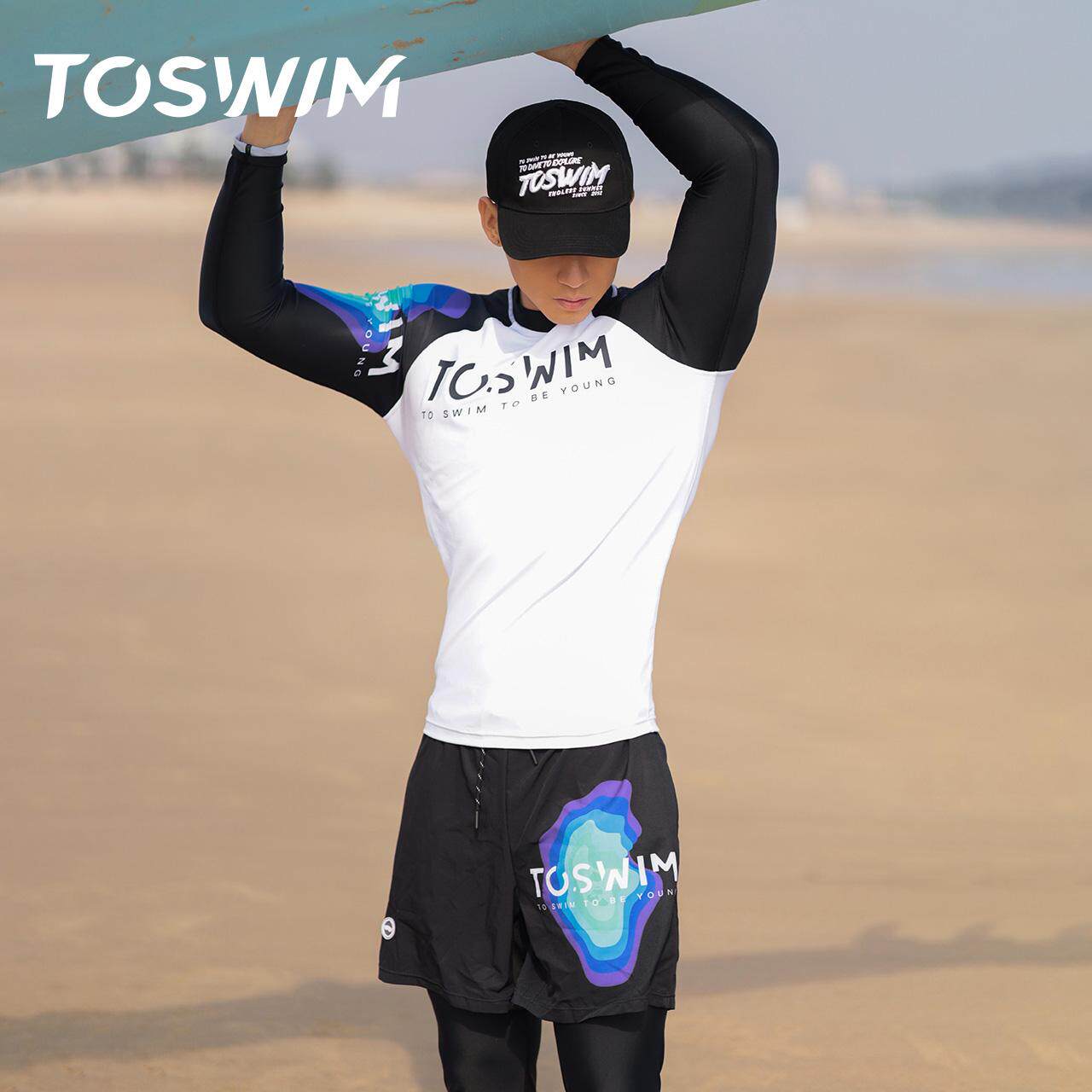 TOSWIM男士游泳裤速干长袖防晒上衣沙滩冲浪泳衣泡温泉套装泳裤男