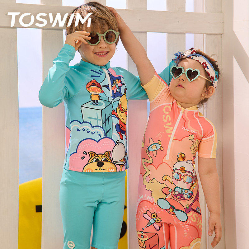 TOSWIM儿童连体防晒泳衣速干游泳衣泳装宝宝泳裤