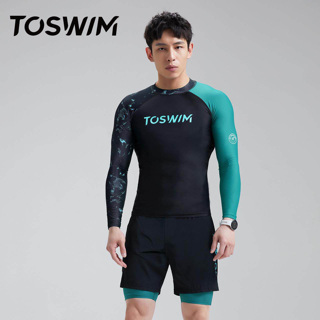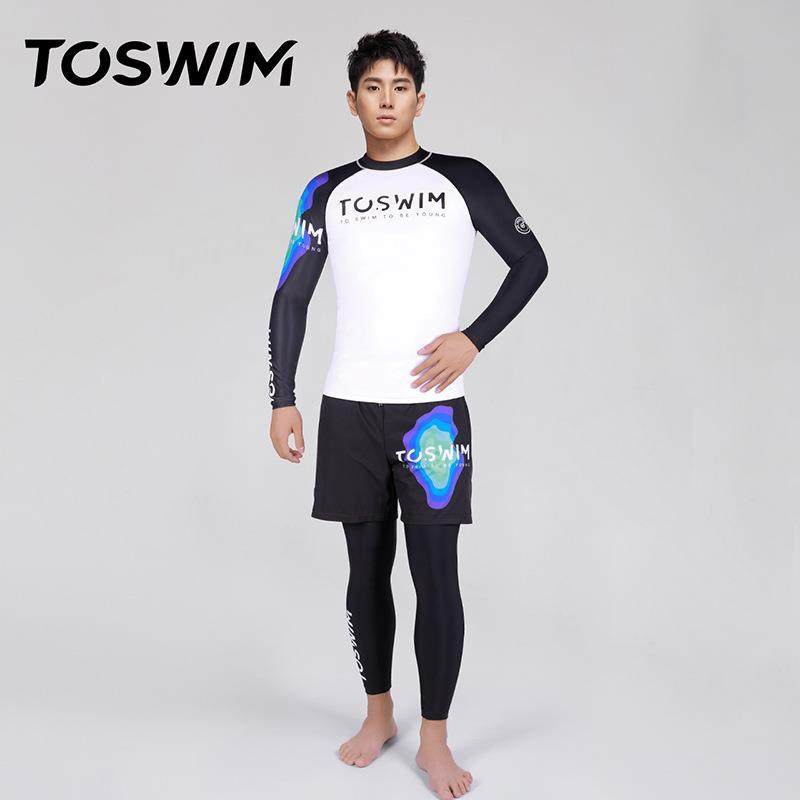 TOSWIM泳衣男士泳裤套装防晒速干长袖长裤冲浪健身泡温泉潜水浮潜