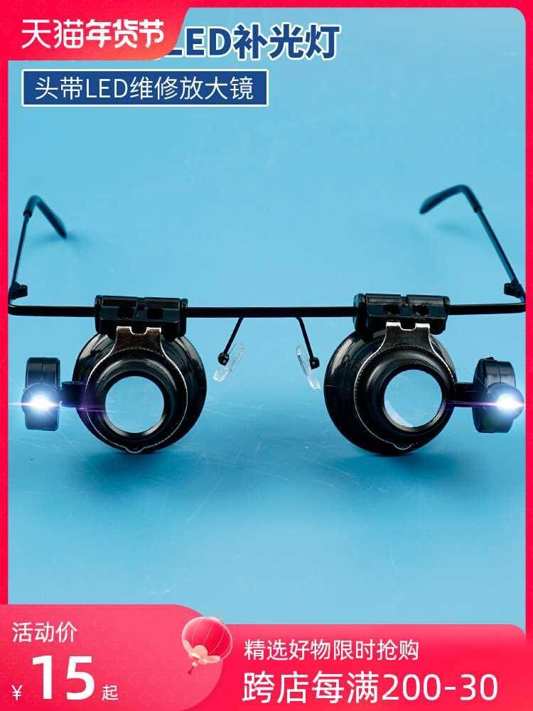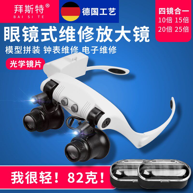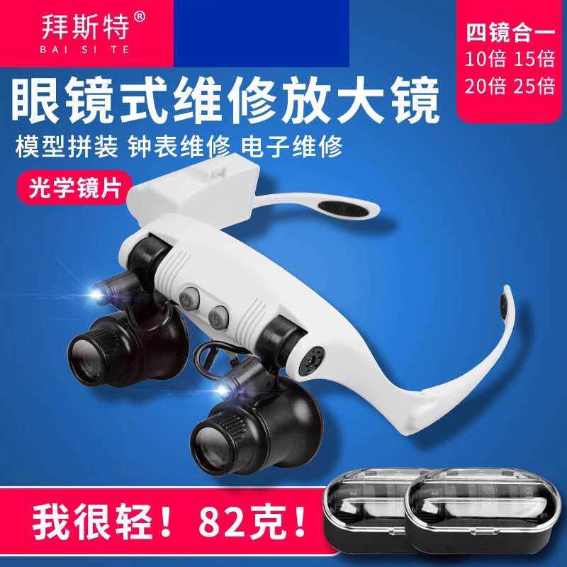 新品拜斯特维修放大镜25倍20倍15倍10倍头戴式带灯电子钟表手工雕