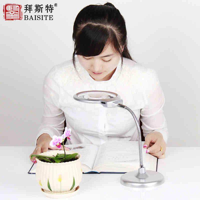 拜斯特台式放大镜带LED灯10倍20倍老人阅读电子检验钟表手机维修
