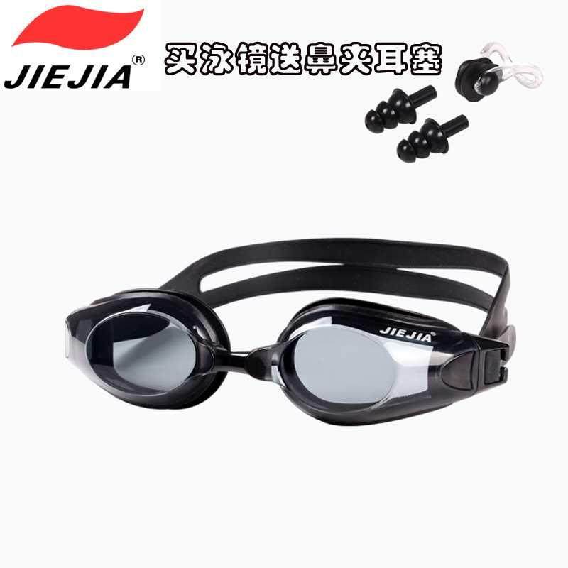 泳镜送泳帽耳塞鼻夹 捷佳男女成人儿童大框防雾平光近视游泳眼镜