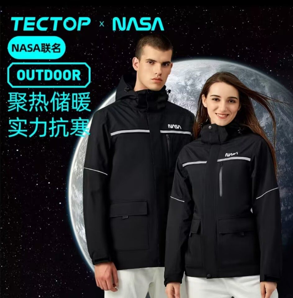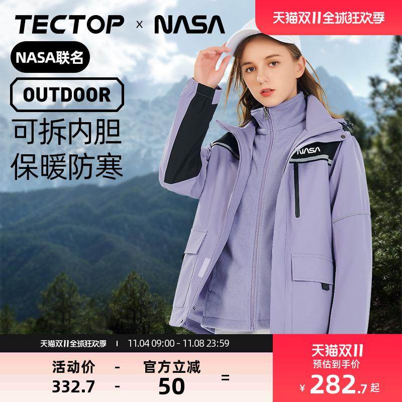 探拓户外冲锋衣男女抓绒保暖可拆卸防风防水露营登山外套NASA联名