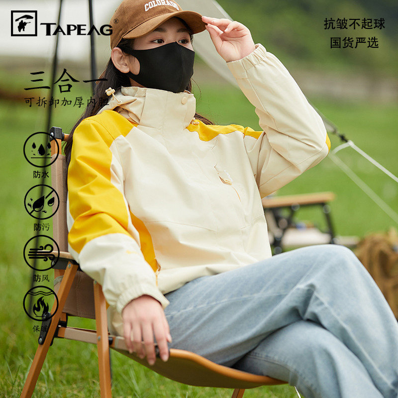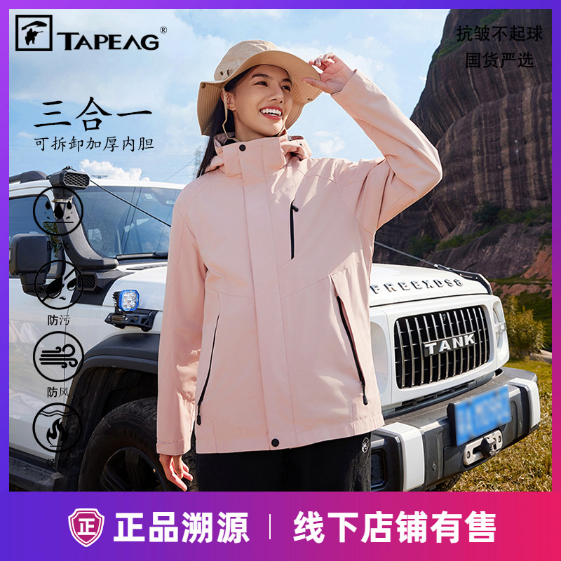 探拓户外冲锋衣女士露营情侣款冬季登山服三合一保暖防风防水外套