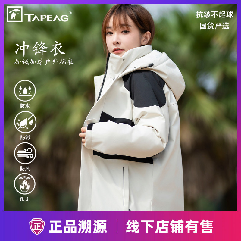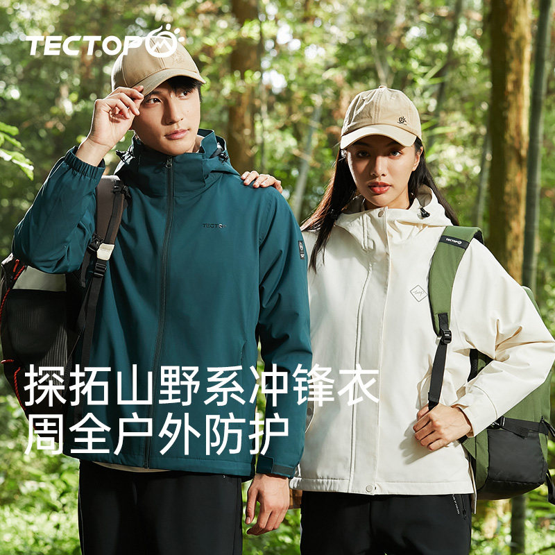 探拓秋冬男女时尚防风防水套绒冲锋衣加厚保暖外套露营登山服