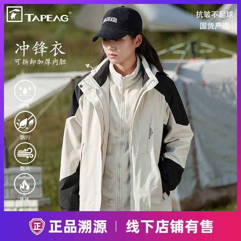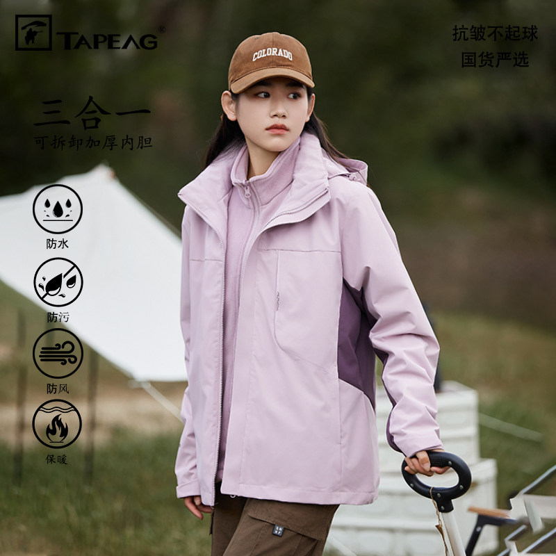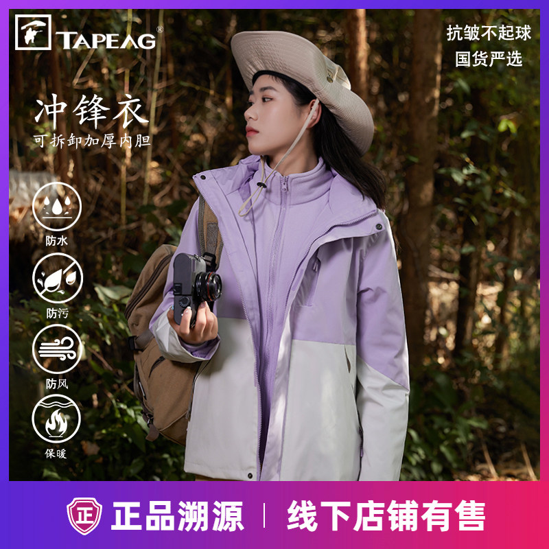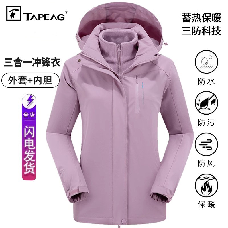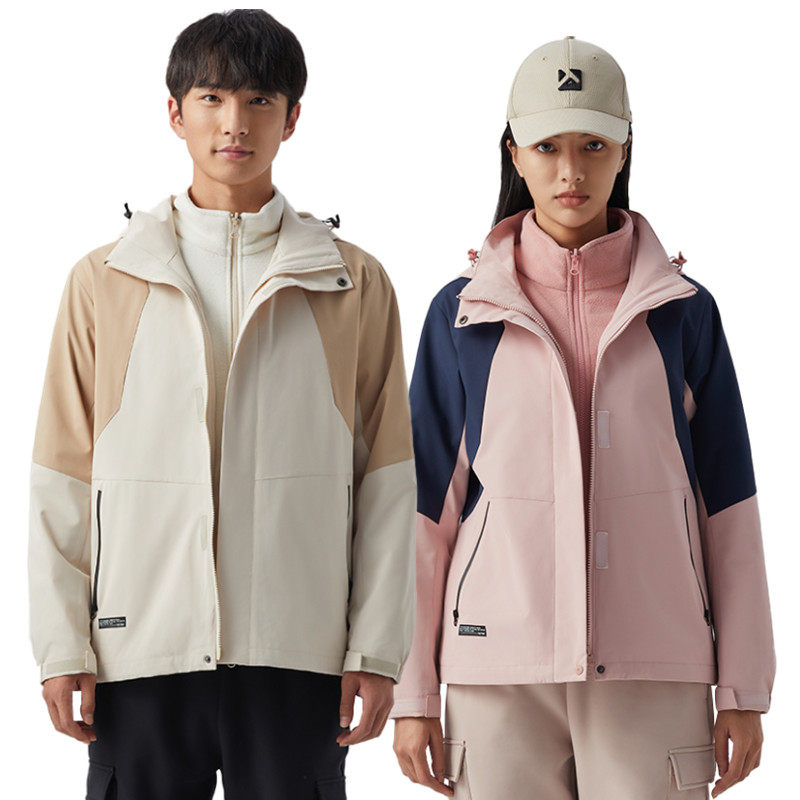 探拓户外冲锋衣男女三合一外套登山服抓绒内胆冬季加厚保暖可拆卸